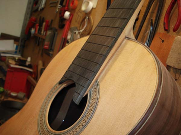 Después de construir todo tipo de guitarras durante muchos años por el sistema tradicional, mi contacto y amistad con algunos excelentes músicos profesionales me ha permitido conocer y examinar directamente las grandes guitarras de concierto de los constructores mas conocidos del momento actual.